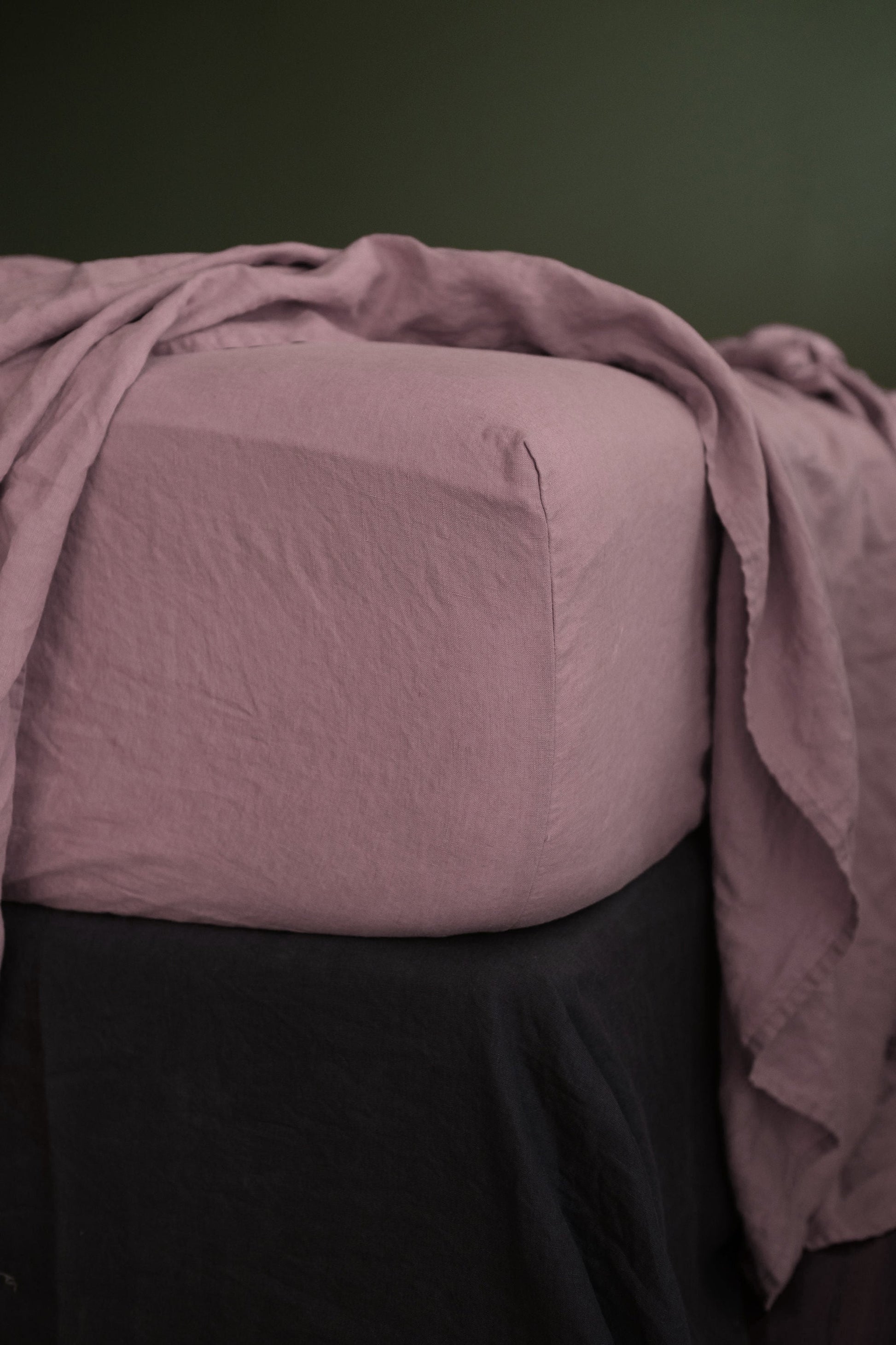 DRAP-HOUSSE EN LIN EUROPÉEN - ROSE FOYER