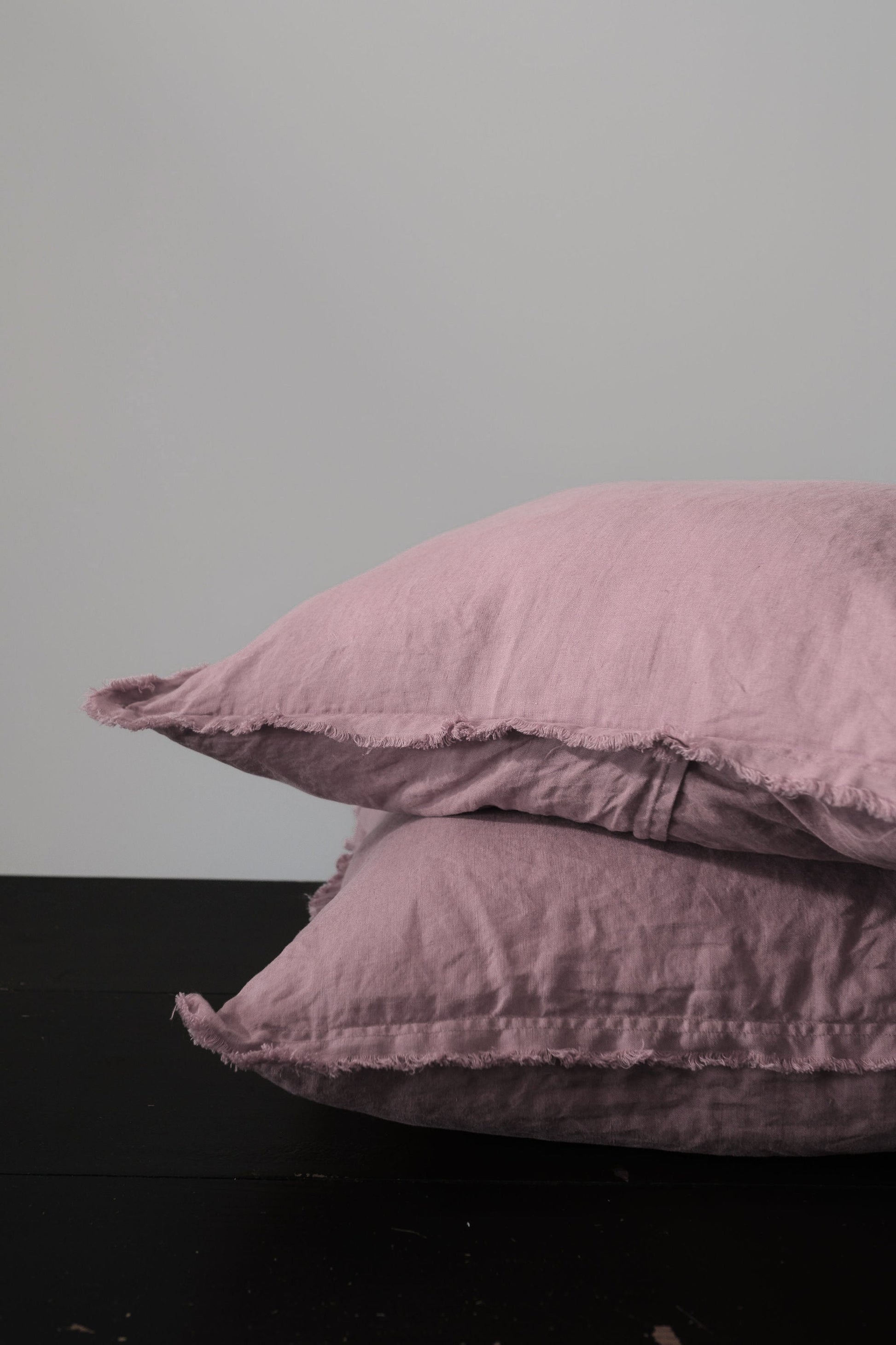 PAIRE DE TAIES D'OREILLER EN LIN EUROPÉEN EFFILOCHÉ À LA MAIN - ROSE FOYER