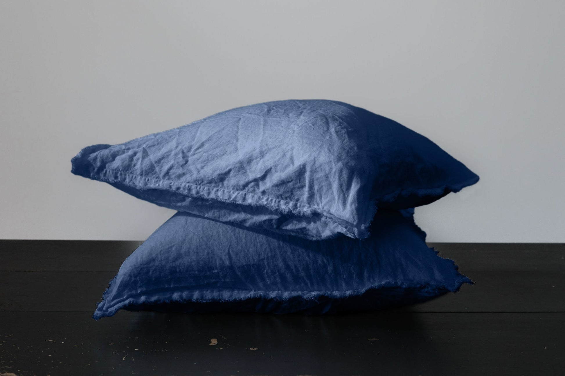 PAIRE DE TAIES D'OREILLER EN LIN EUROPÉEN EFFILOCHÉ À LA MAIN - BLEU DENIM