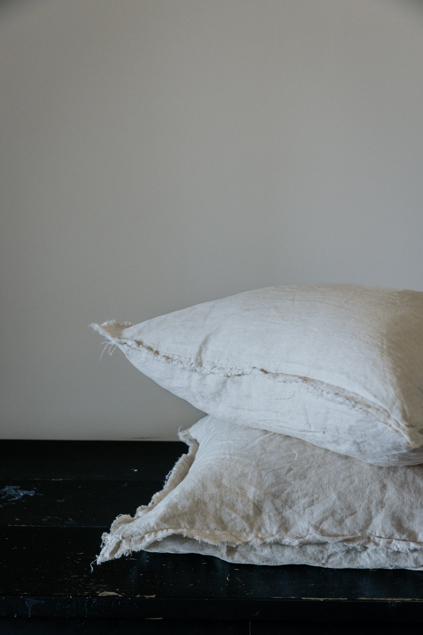 PAIRE DE TAIES D'OREILLER EN LIN EUROPÉEN EFFILOCHÉ À LA MAIN - TISSAGE NATUREL