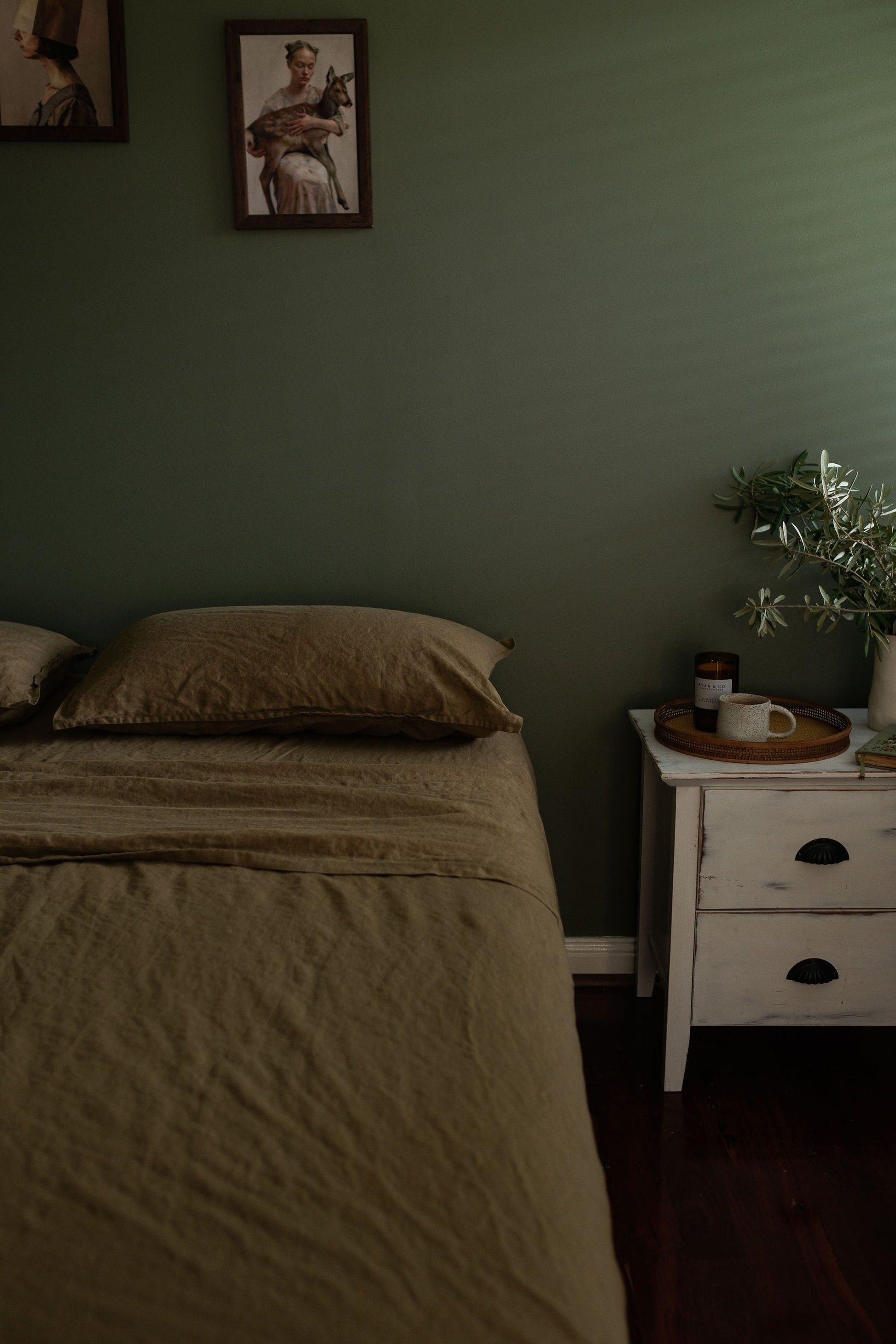 DRAP PLAT EN LIN EUROPÉEN - OLIVE