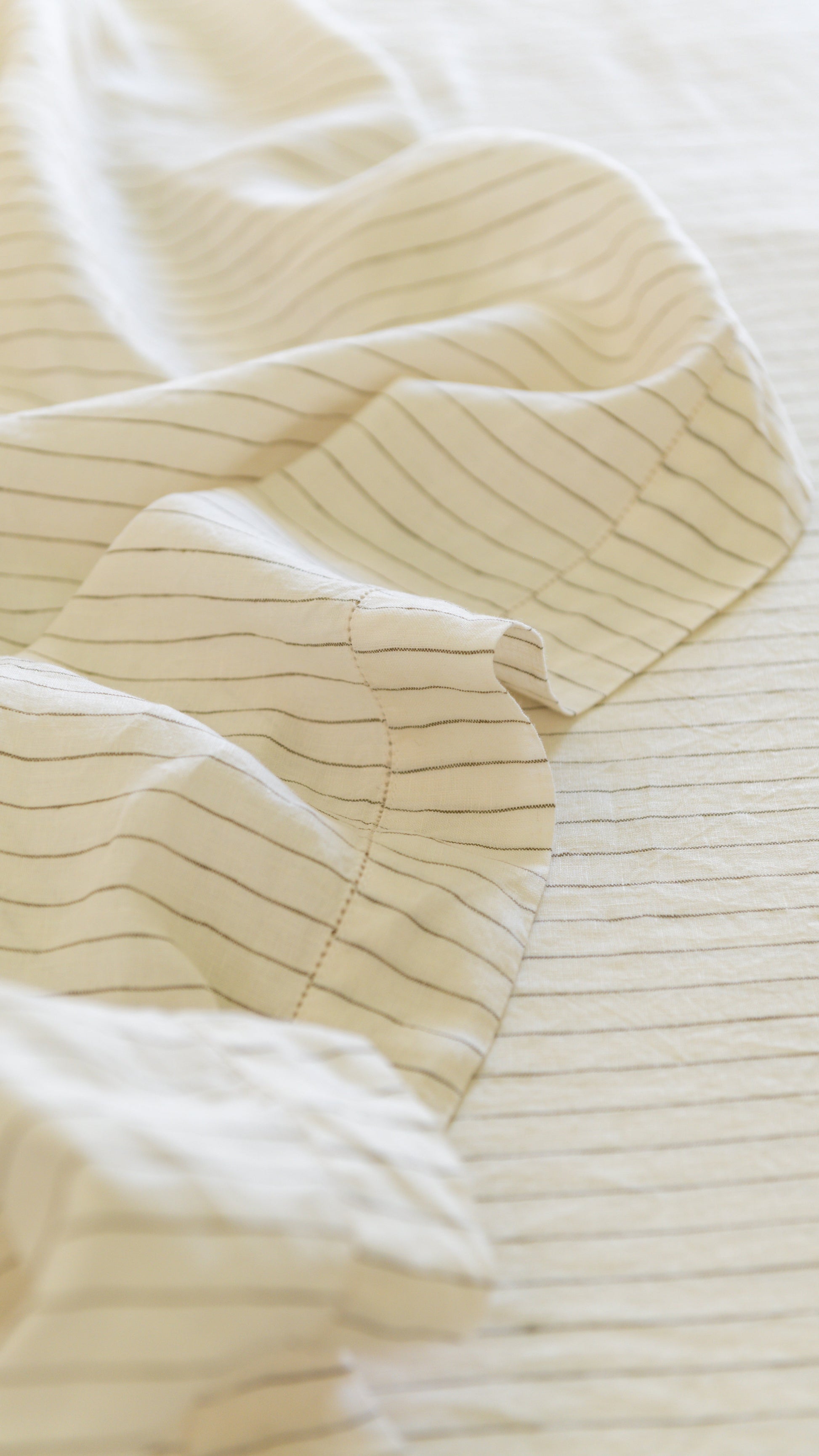 DRAP PLAT EN LIN EUROPÉEN - RAYURES FINES OLIVE