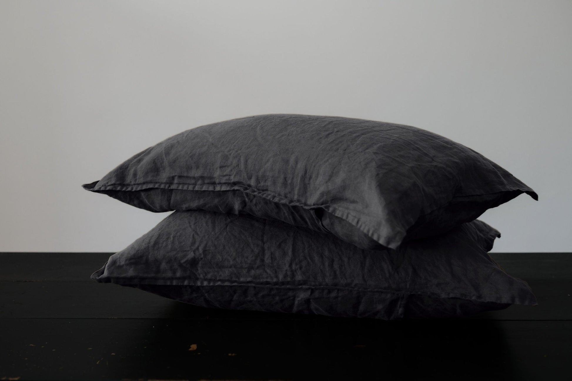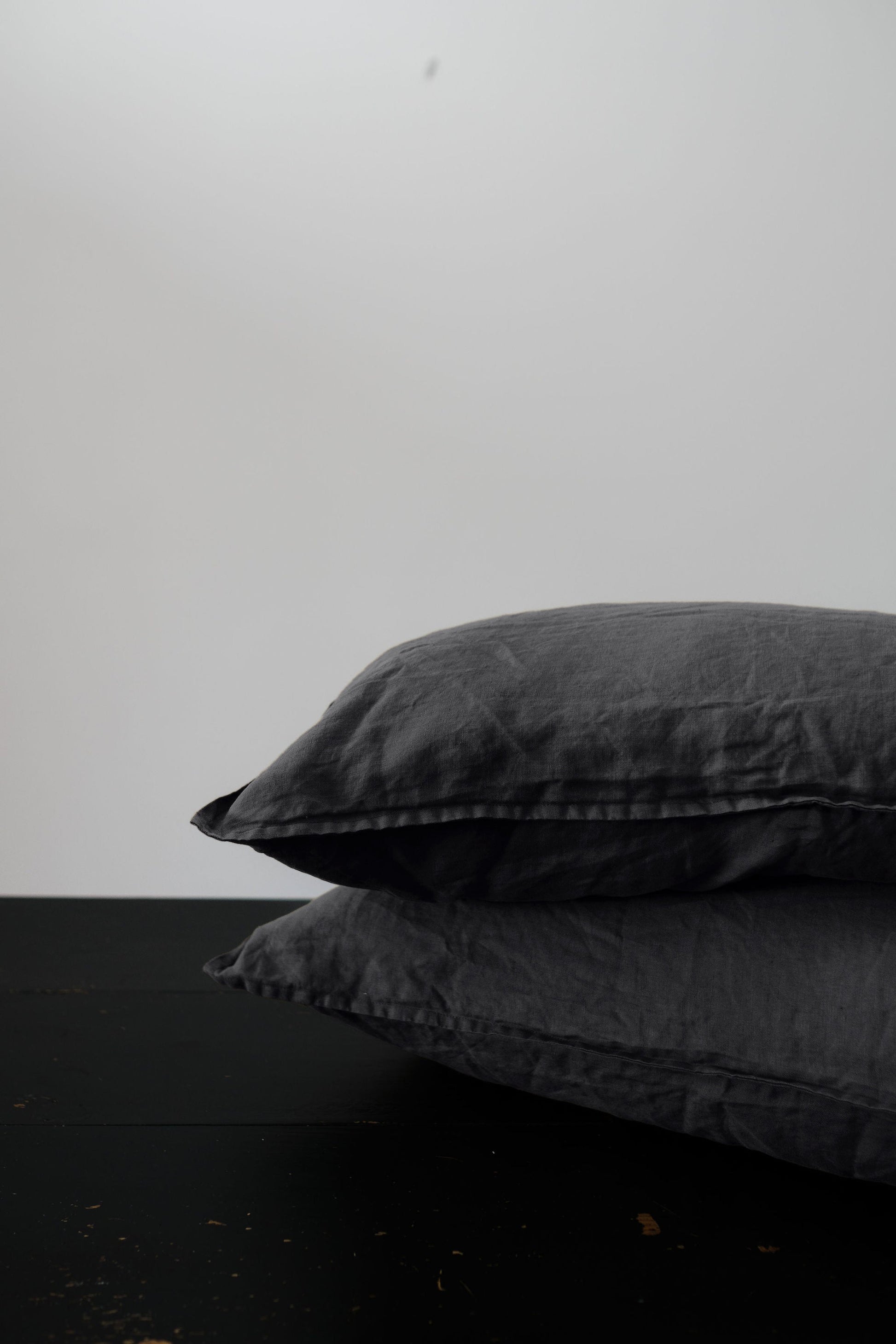 PAIRE DE TAIES D'OREILLER STANDARD EN LIN - GRIS ANGLAIS FONCÉ