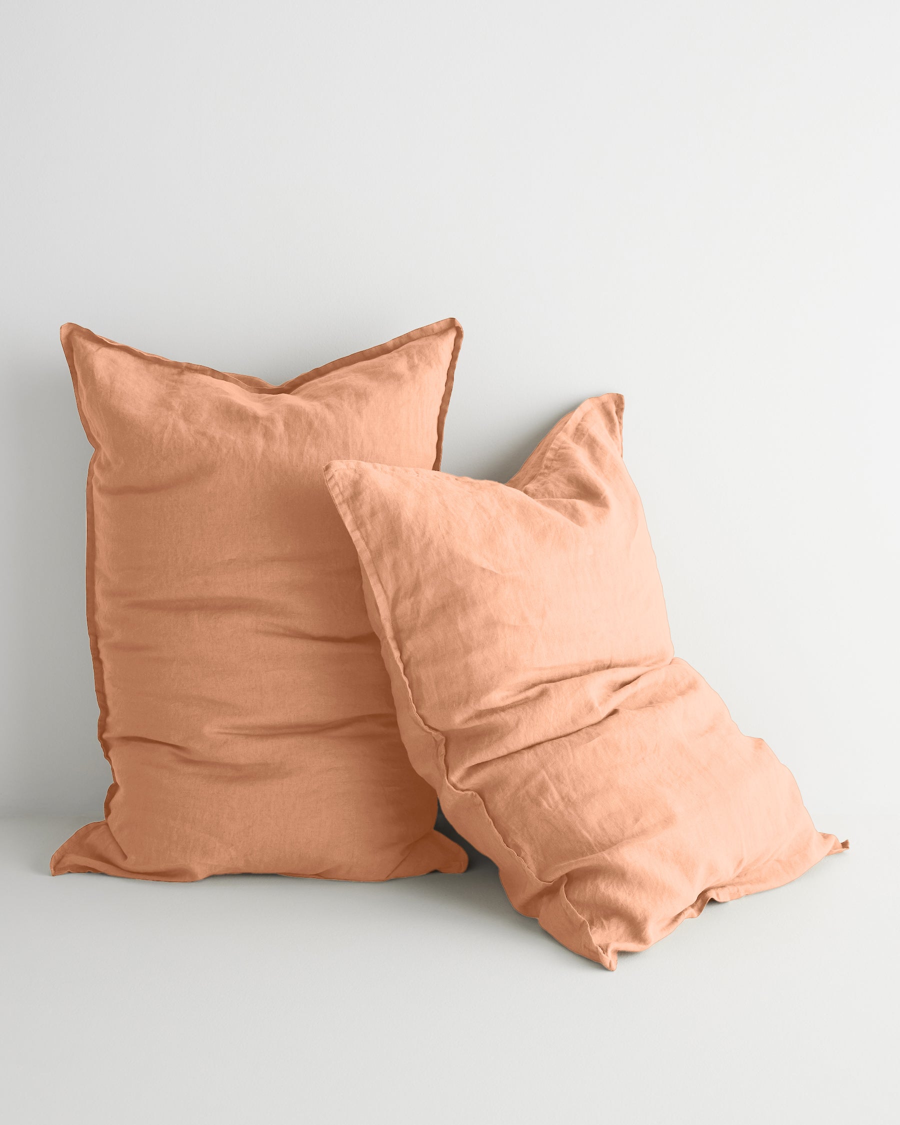 PAIRE DE TAIES D'OREILLER STANDARD EN LIN - PÊCHE