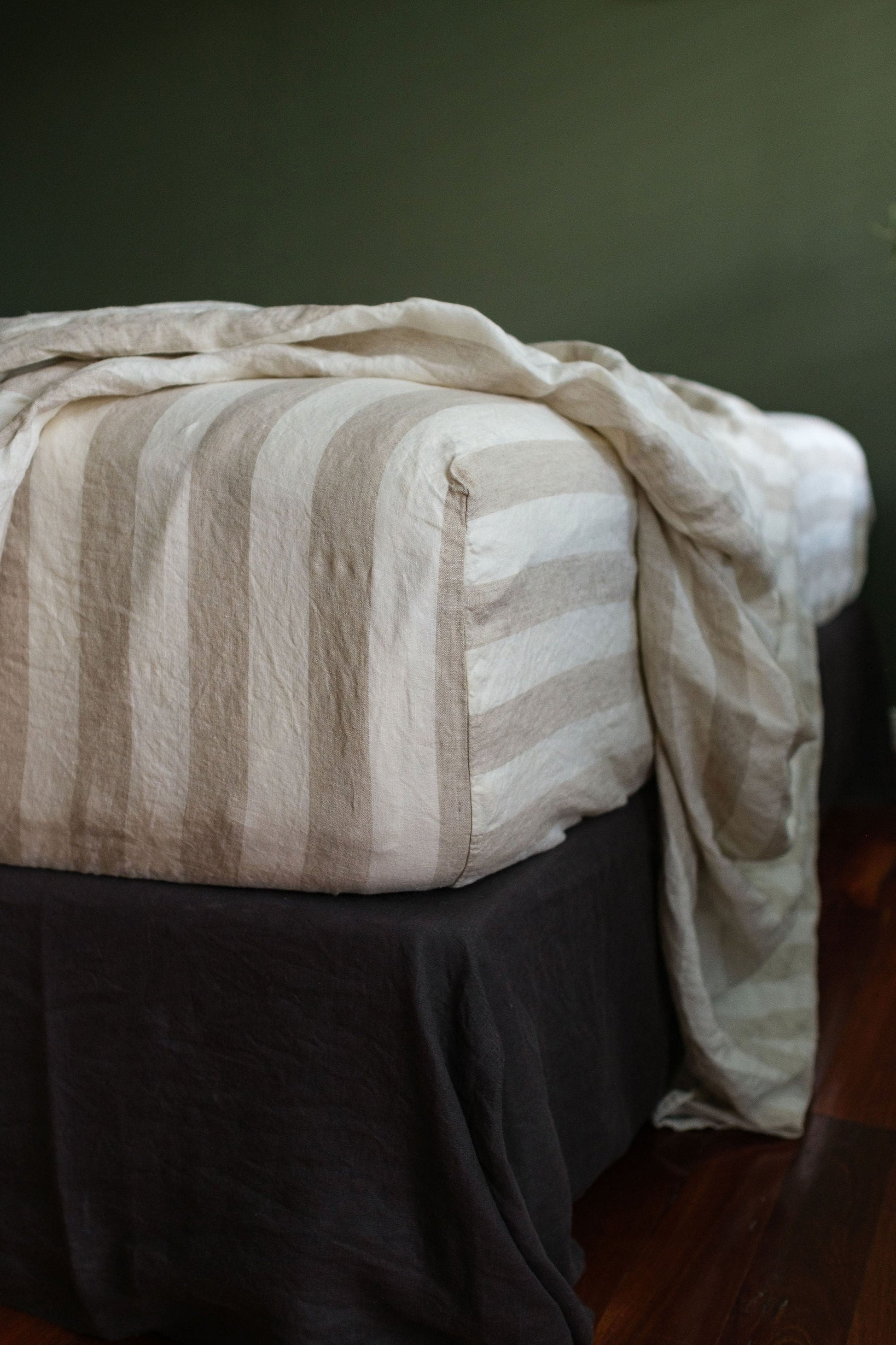 DRAP-HOUSSE EN LIN EUROPÉEN - LARGES RAYURES NATURELLES